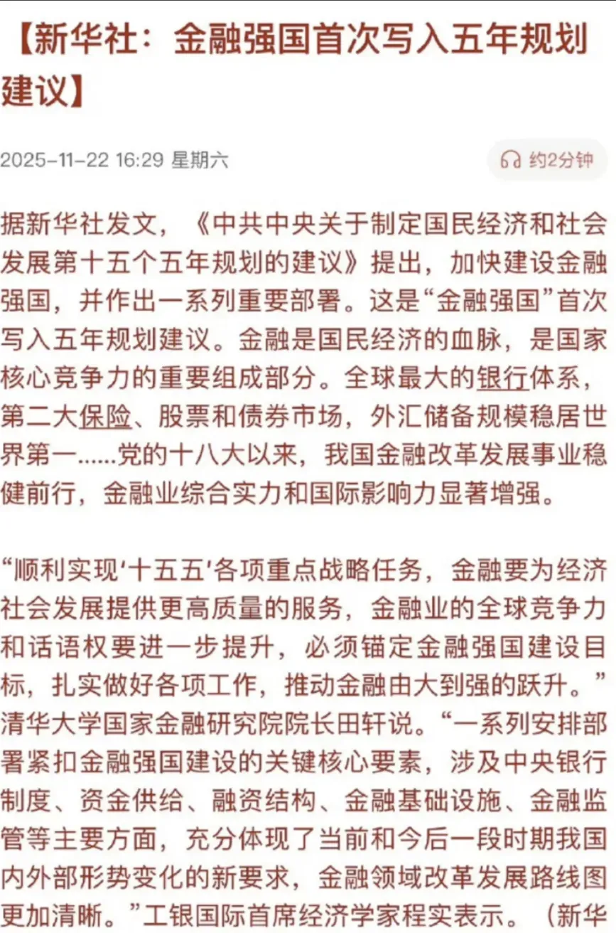 金融强国是我国新提出来的词汇,也是近日的热词。11月22日,金融强国首次写入我国五年规划建议。